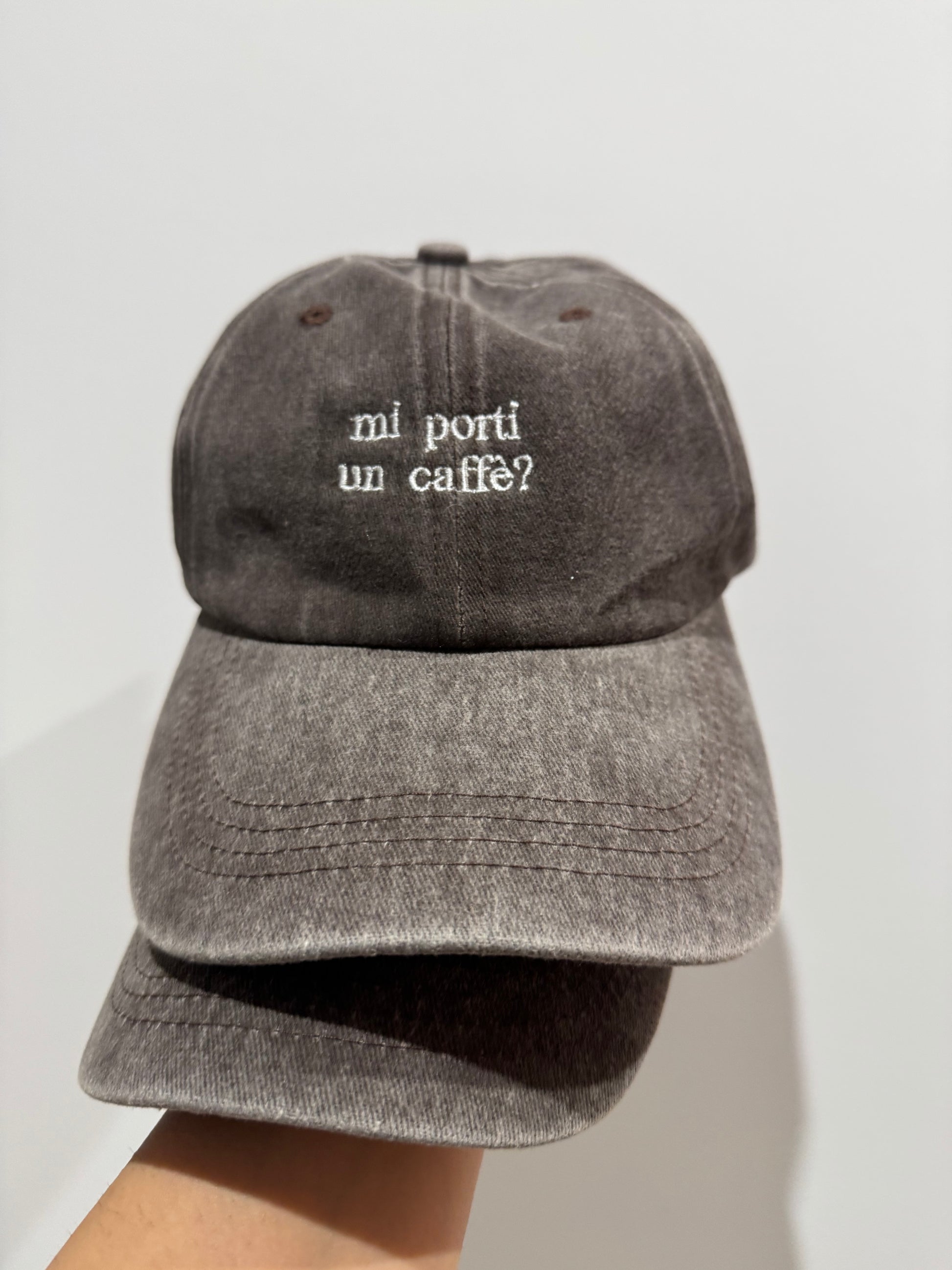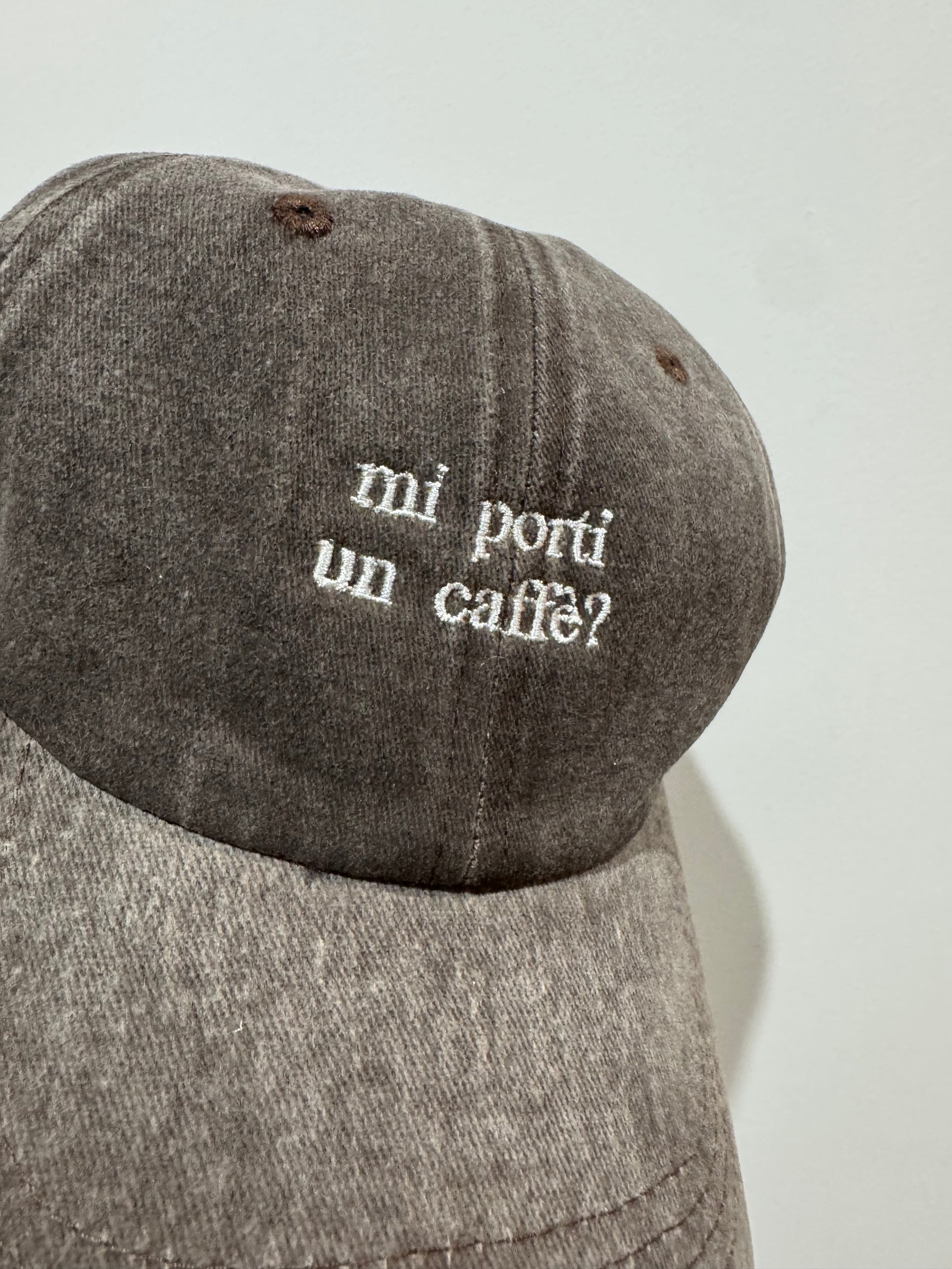 Scritta embroidery / ricamata: “Mi porti un caffè?”. 🧢🪡